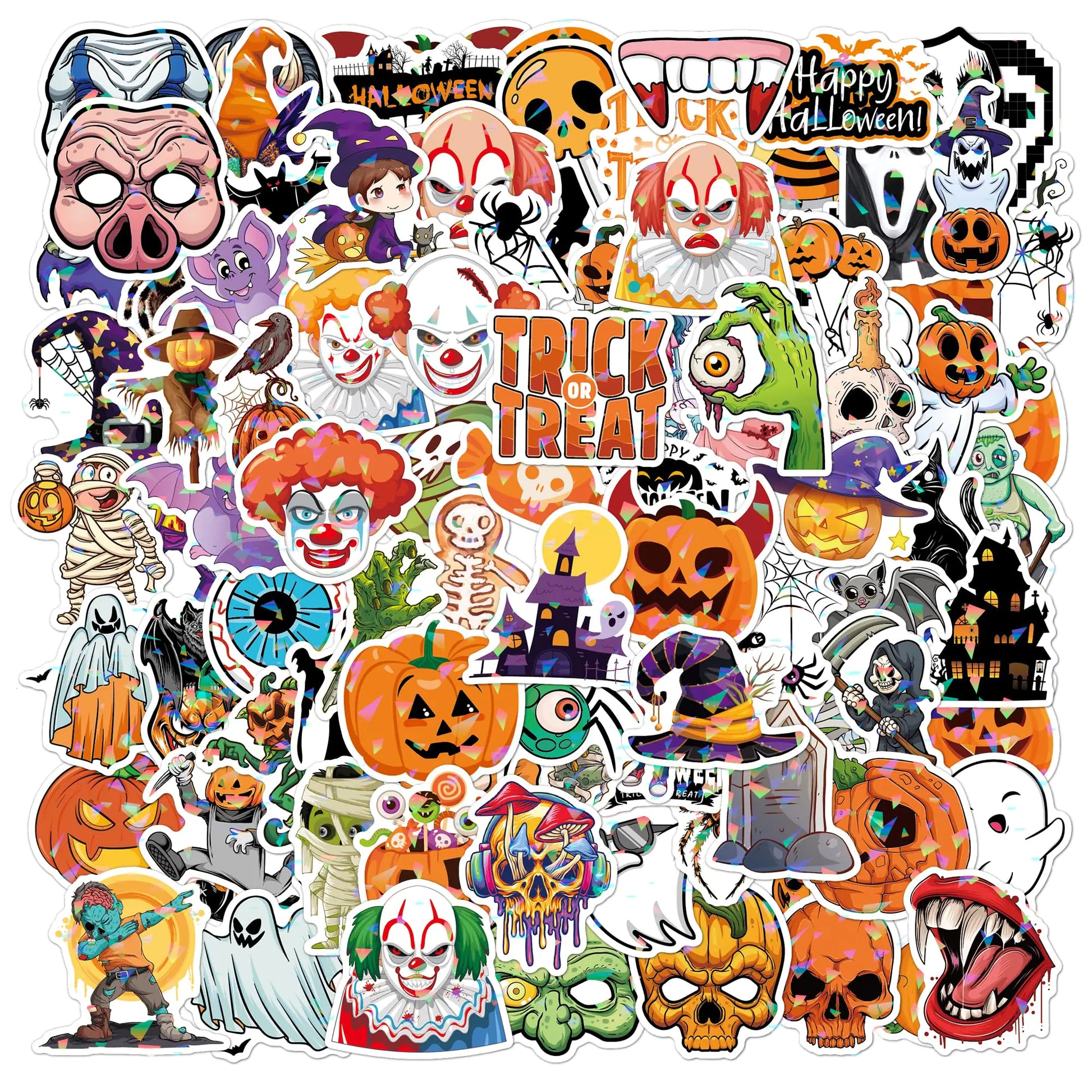 100 PCS Waterproof Halloween StickersUnique and fashionable style clear pattern printing clean cut edges waterproof stickersVery easy to use just peel them off and stick them anywhere you want to decorate such as laptops cell phones notebooks water bottles skateboards envelopes luggage refrigerators guitars. They can be attached with confidence no adhesive residue when you peel them off.